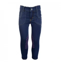 HKM GIRLS’ RIDING BREECHES SUMMER DENIM EASY 3/4 SILICONE GRIP