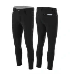 The breeches are made of technical fabric that is very breathable and fits the rider’s body while allowing full freedom of movement. The fabric ensures a comfortable ride during winter as well as during warmer months. The breeches are fitted with elastic cuffs so that they won’t roll up while riding.