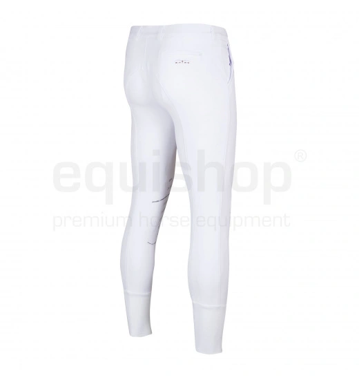 Exclusive men’s breeches from the well-known Italian brand – Animo. They are made of the highest quality breathable and elastic fabric. These breeches perfectly fit to the body, providing maximal comfort and freedom of movements. Silver contained in the fabric’s fibers makes this material anti-bacterial, draining moisture to the outside, non-absorbent of bad smells, which makes the rider feel fresh and overall better while riding. Due to application of innovative technology, these breeches are light, durable and they don’t require ironing. They have strengthened knees and elastic trimming in the legs. The breeches are decorated with a discreet logo embroidered on the back pocket.