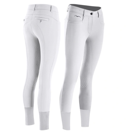 Exclusive ladies’ breeches from the well-known Italian brand – Animo. They are made of the highest quality breathable and elastic fabric. These breeches perfectly fit to the body, providing maximal comfort and freedom of movements. Silver contained in the fabric’s fibers makes this material anti-bacterial, draining moisture to the outside, non-absorbent of bad smells, which makes the rider feel fresh and overall better while riding. Due to application of innovative technology, these breeches are light, durable and they don’t require ironing. Full silicone grip provide ideal position and adhesion in the saddle. The breeches are decorated with a discreet logo embroidered above the right pocket.