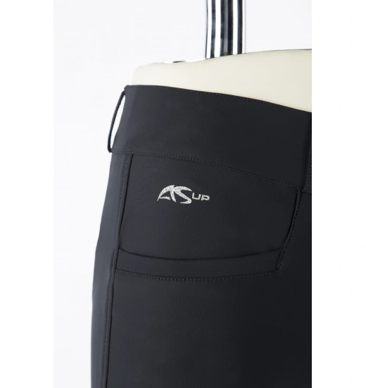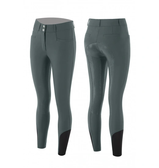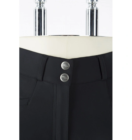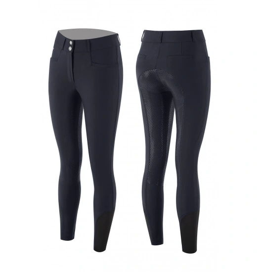 These breeches are made of high-quality elastic fabric that adapts to the riderโs legs without restricting any movement. The breeches are high-waisted and emphasize the figure. They also have two front pockets as well as elastic inserts at the bottom of the legs to prevent breeches from sliding during a ride. The full silicone grip helps the rider to maintain a good and confident seat in the saddle.