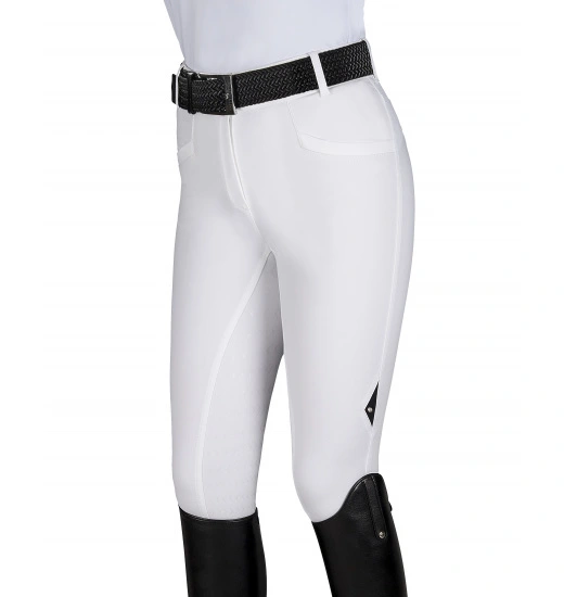 Women’s breeches from Equiline. They are made of high-quality material that is characterized by excellent breathability, is elastic, and allows for full freedom of movement. Additionally, the breeches have a full silicone seat that provides great adhesion in the saddle. In the top part, there are two pockets and wide belt loops.