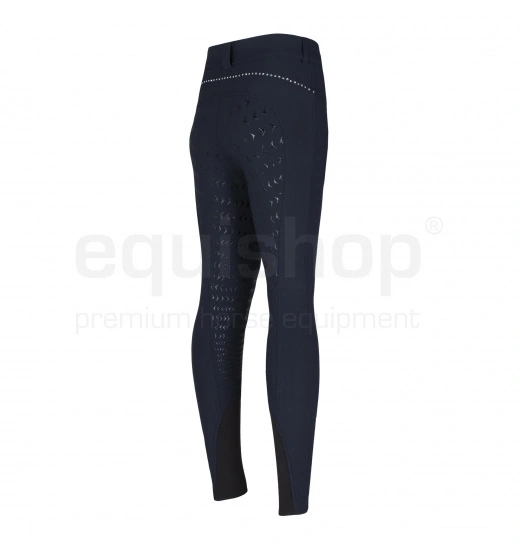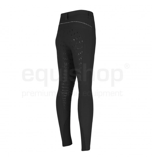 Ladies’ breeches with full silicone seat and a unique pattern. They are made of the highest-quality elastic material that stretches in all four ways. Comfortable and breathable. They perfectly fit to the body. Their legs have elastic inserts at the bottom. These breeches are decorated with shiny crystals.