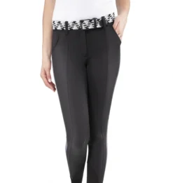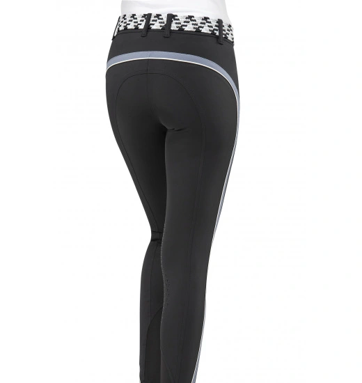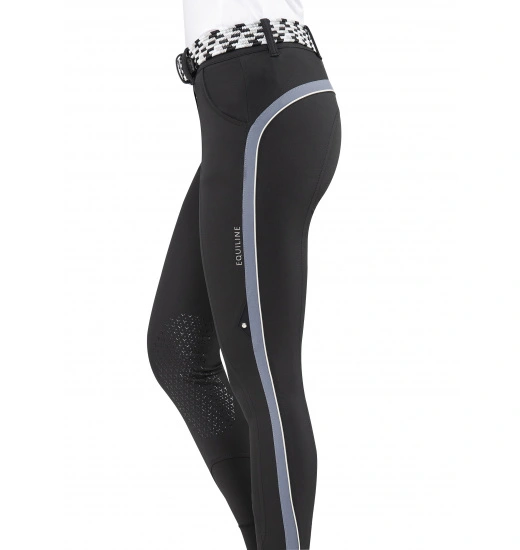 The breeches come from the latest Equiline Spring/Summer 2020 collection. They are made of highly elastic material that stretches in all four ways. The breeches have a silicone knee grip that provides excellent adhesion to the saddle. They have two capacious pockets. What is more, the pants have lycra inserts, which makes them fit the rider’s body and highlight the shapes even better. They are beautifully trimmed and will prove as highly functional. The breeches’ legs have elastic inserts that prevent chafing of the ankles. They have contrasting trimming, which adds elegance and sporty character.