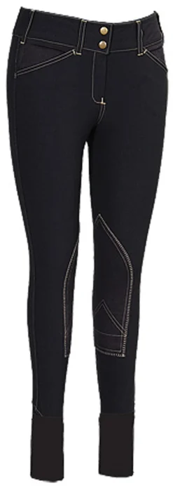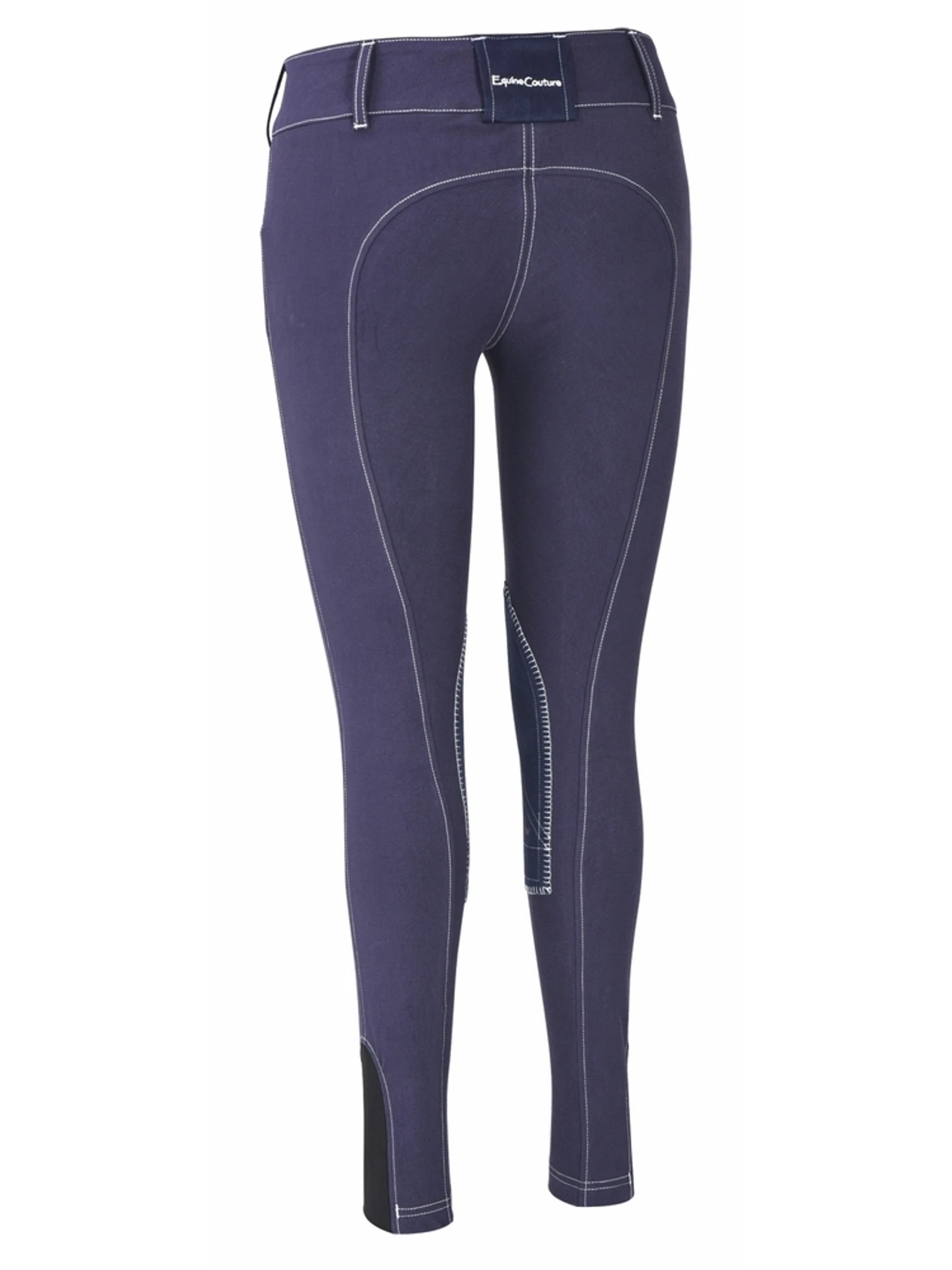 Wide waist band, low rise breeches with a Euro seat seam and 2 front pockets lined with ultra suede. With contrast stitching, Equine Couture’s Comfort Sock System (CS2) leg bottom is made to fit any leg length. The soft stretch opening offers perfect, seamless comfort underneath your boots or chaps.Â