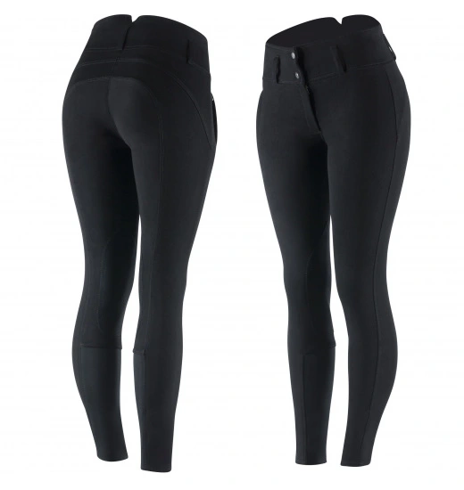 Daniela are comfortable breeches with a high waist that additionally supports your back. The breeches have two buttons. The pants are made of soft fabric and stretch. Their slimming cut perfectly fits the body, highlighting your shapes. They have a zippered pocket on the front. There is a short leather grip on the inner side of the knees, which provides better adhesion for the knees, allowing the rider for improved freedom. This product will be perfect for people starting their adventure with equestrianism and for recreational riders.