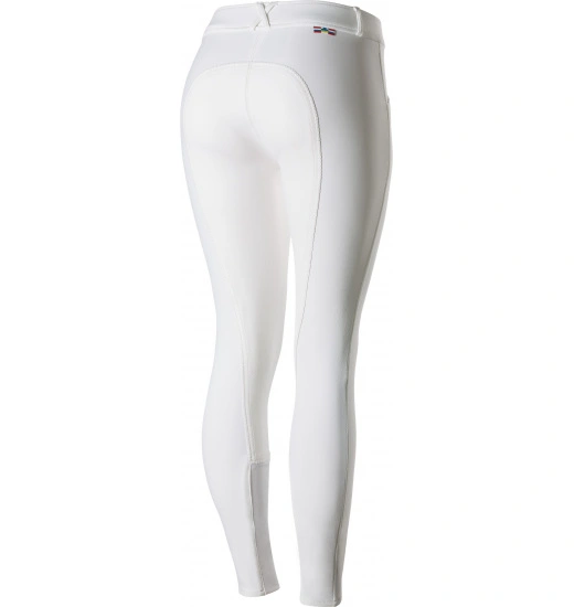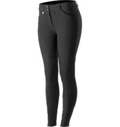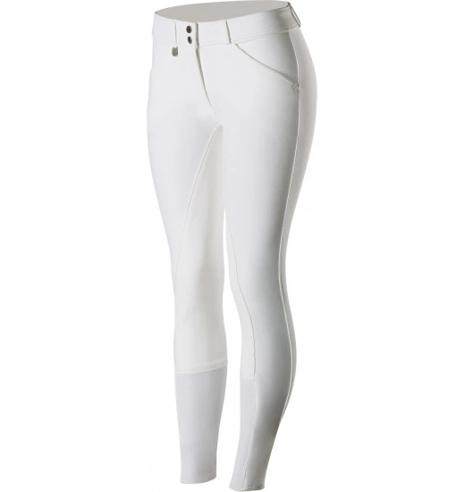 The Grand Prix model of breeches with leather grip was made for women’s dressage riders. The breeches are characterized by their classic patterns. They are made of breathable fabric, providing additional protection from water permeation, and resistance to dirt and dust. The leather grip is elastic, does not restrict the rider’s movement, and guarantees excellent adhesion to the saddle. This model has a profiled waist, which makes them fit the body perfectly. This is a mid-high waist model.