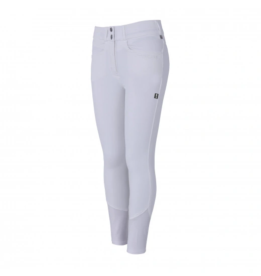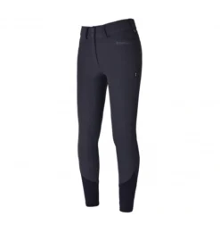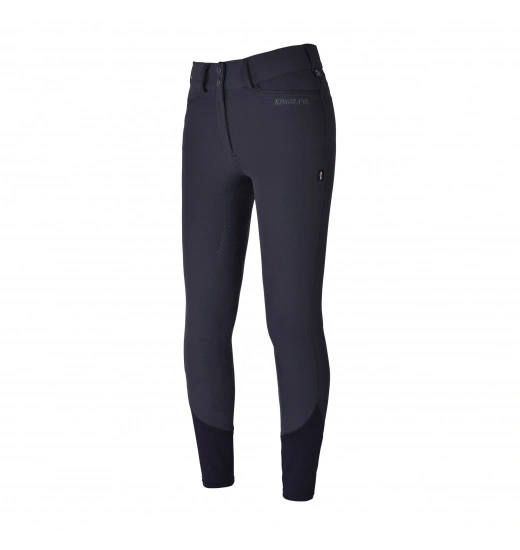 Ladies’ breeches with full silicone seat. They have high waist and two buttons. The breeches are made of the highest-quality elastic material that stretches in all four ways. Waterproof, they do not absorb dirt or dust and are breathable. For maximal comfort, their legs have lycra at the bottom. These breeches are decorated with a Kingsland inscription by the left pocket and a small logo badge.