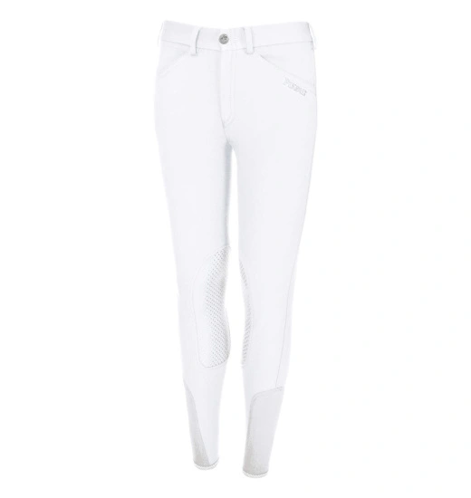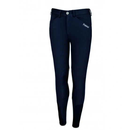 Girls’ breeches with silicone knee grip. They are made of the highest quality elastic material that stretches in all four ways, is comfortable and breathable. They provide ideal adhesiveness and stability in the saddle. These breeches are decorated with an embroidered Pikeur inscription by the left pocket. Their legs have elastic inserts. Their classic cut with two pockets and regular waist will guarantee comfort even for the most demanding of riders.