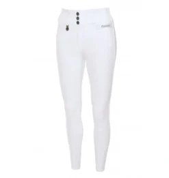 Exceptionally elegant breeches with full seat. They are eye-catching with trendy high waist, fastened with three buttons and a zipper. These breeches are made of the highest-quality elastic fabric that stretches in all four ways. Breathable and comfortable. Their legs have elastic inserts at the bottom. The breeches are decorated with a small Pikeur inscription. Available in white – they will be perfect for competitions.