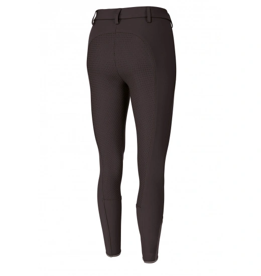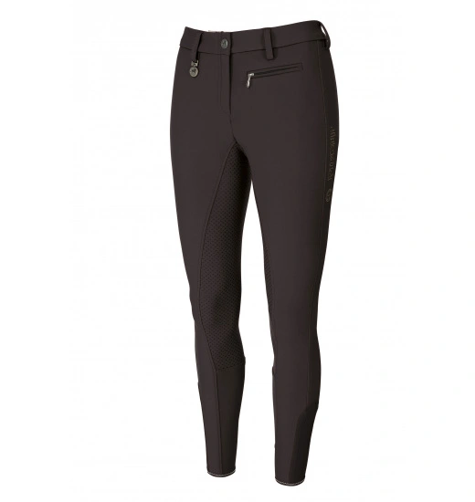 Ladies’ breeches with full silicone seat – grip that provides comfort and stabilization in the saddle. It is one of the most popular breeches models. The breeches are made of the highest-quality breathable and comfortable fabric that stretches in all four ways. There is a zippered pocket on the front. Their legs have elastic inserts at the bottom. These breeches are decorated with a Pikeur inscription on a thigh and a metal pendant on a belt loop.