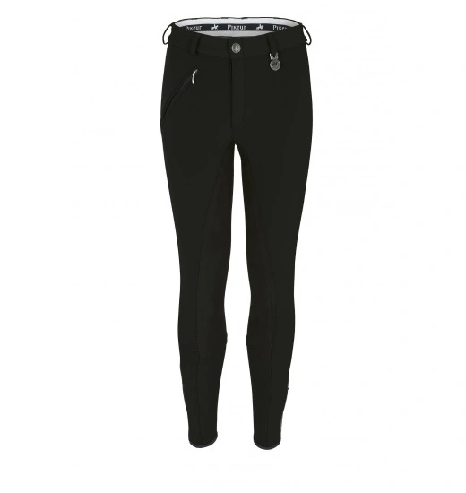 The most popular, iconic model of Pikeur’s breeches. Girls’ breeches with full grip made of synthetic McCrown suede provide perfect adhesiveness and stabilization in the saddle. The breeches are made of the highest-quality elastic material that stretches in all four ways. They are comfortable and breathable. The legs are fastened with solid velcro. These breeches have a small pendand with Pikeur’s inscription.