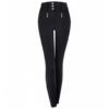 The breeches have two zippered pockets on the front. They are decorated with the brand’s logo above the left pocket.