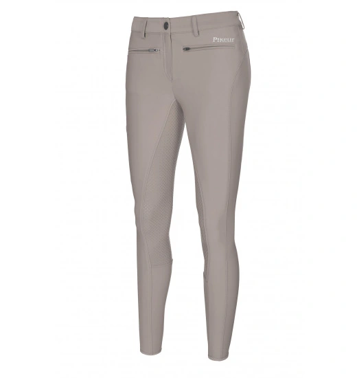 Women’s breeches with a full silicone grip that provides comfort and stability in the saddle. The breeches are made of the highest quality elastic fabric that stretches in all four ways, is comfortable and breathable. They have two zippered pockets on the front and a functional pocket on a thigh. Their legs are trimmed with elastic inserts. The breeches are decorated with a small Pikeur writing.