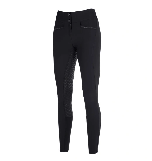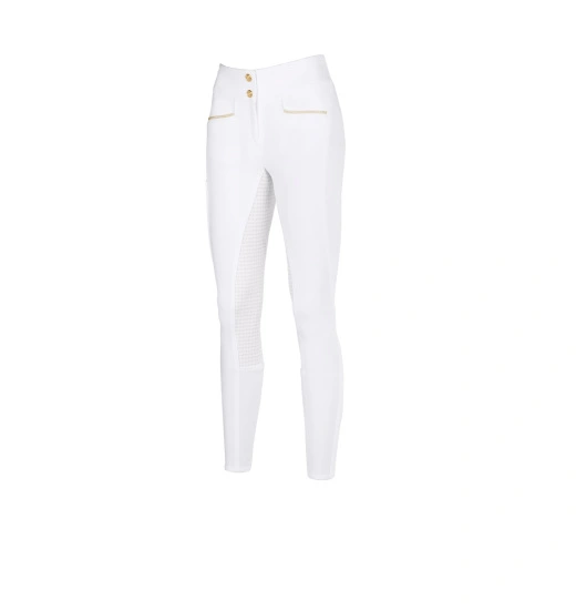 Very elegant riding breeches with a full silicone grip, which keeps the rider’s leg steady in the saddle. The high waist with two buttons does not bother the rider while riding, it is comfortable and at the same time prevents the pants from slipping off.