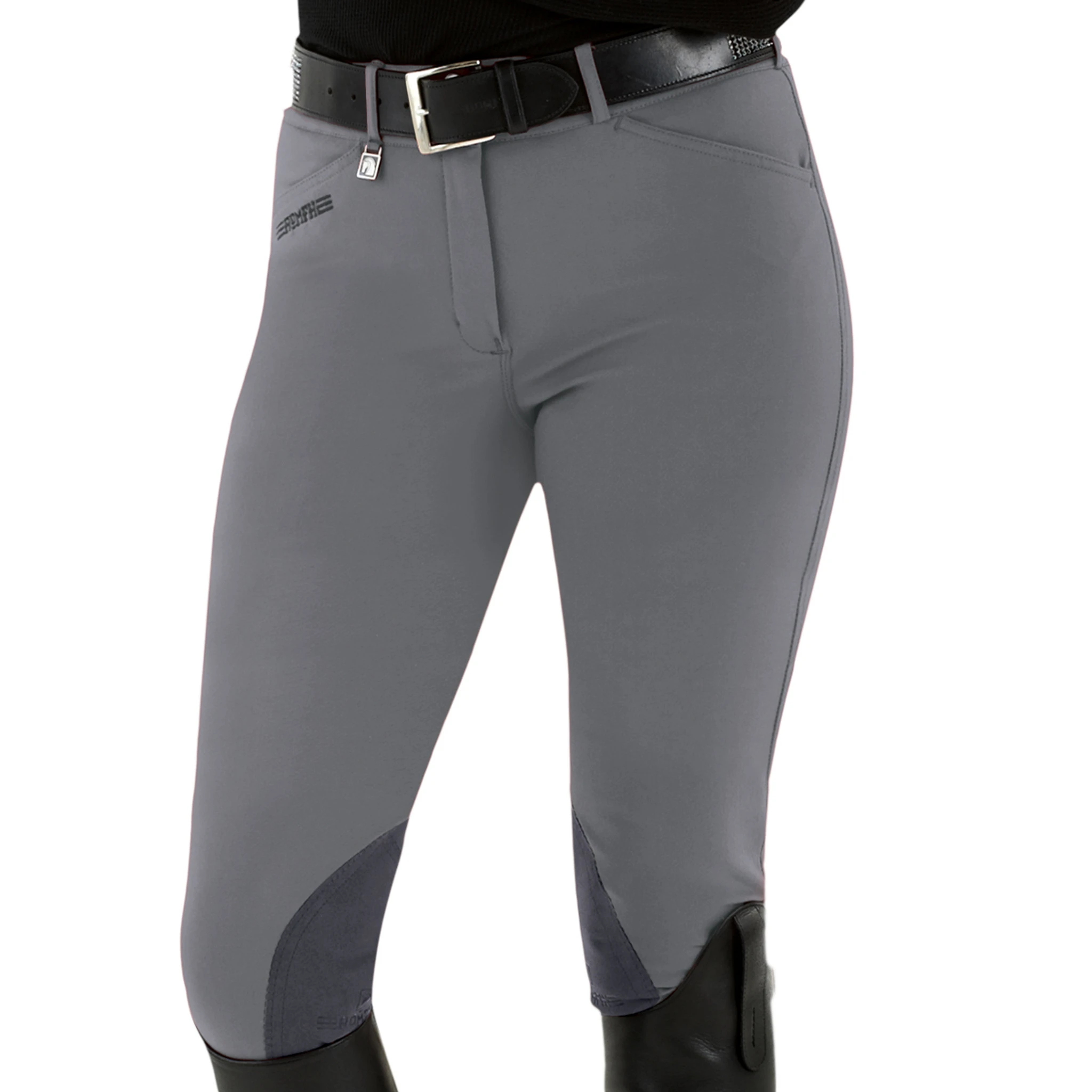 The fabric in the Romfh Champion Euro Seat Breech is a real “work horse”, a tough combo of cotton and stretch micro-nylon called Dura-Dry. Dura-Dry wears like iron, yet is as lightweight and comfortable as the famous, Romfh International fabric. Even on the hottest day you will feel dry and comfortable. The Champion also features “Curve Fit”, a special cut to reduce any “gapping” at the back waist, nipped in at the waist and cut fuller through the seat and thigh. Perfect for the curvy girls! 2 button mid-rise, lightweight woven with stretch ankle. Machine washable.