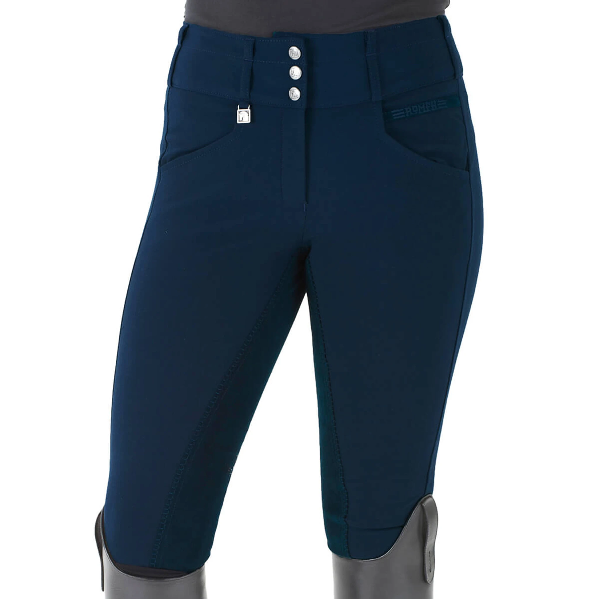 The fabric in the Romfh® Champion Full Seat Dressage Breech is a real “work horse”. Eros, is a 100% micro-fiber fabric which is tough yet soft and cool. Even on the hottest day you will feel dry and comfortable. The Champion also features “Curve Fit”, a special cut to reduce any “gapping” at the back waist, nipped in at the waist and cut fuller through the seat and thigh. Perfect for the curvy girls! 3 button high-rise, lightweight woven with stretch ankle.