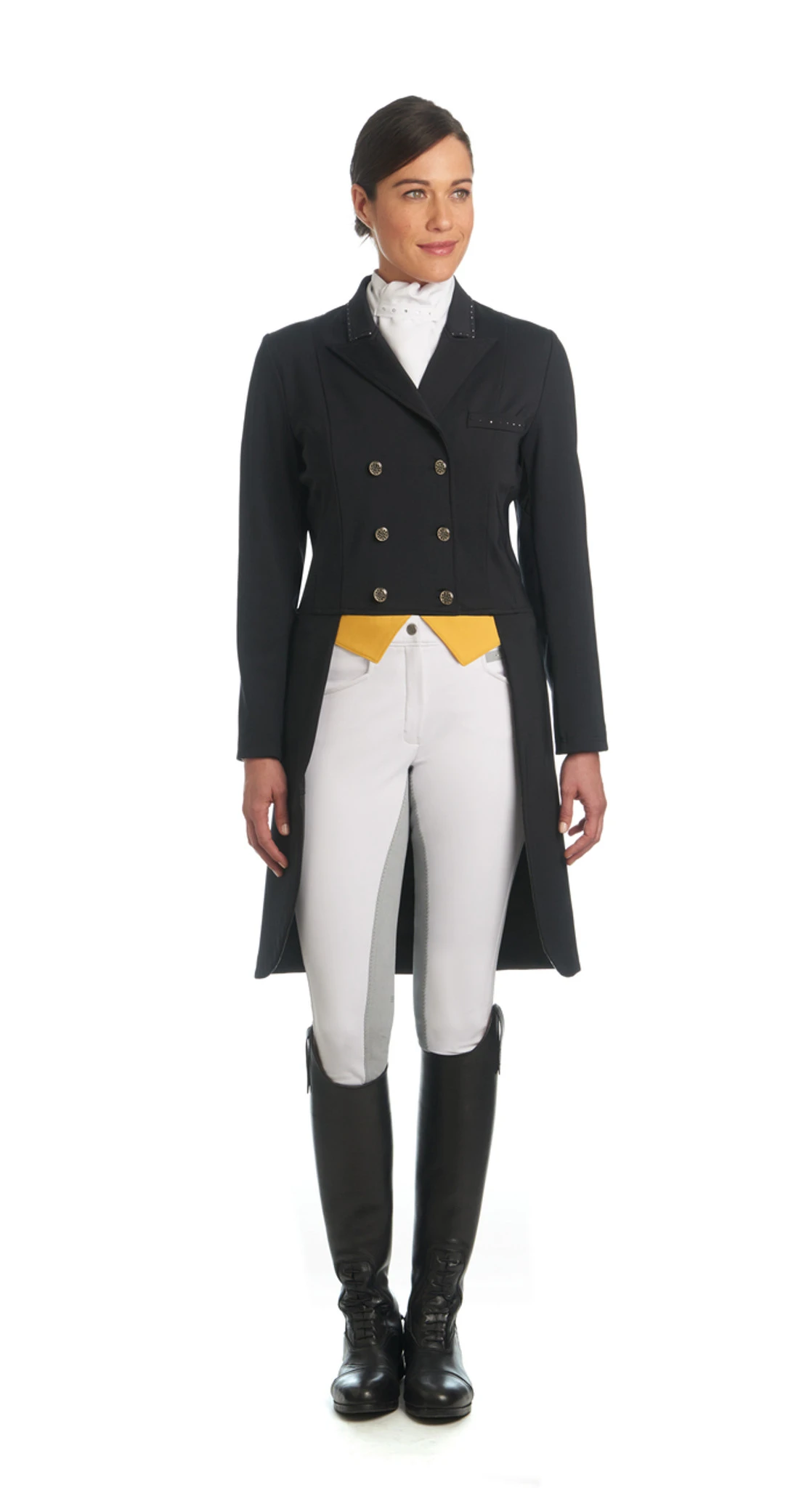 The Romfh Isabella Full Seat Breech is truly the best of all worlds! Made of cooling “Soft-Touch” fabric – the same as the top-selling Sarafina Breech – with the same flattering cut as the super-popular Champion Full-Seat Breech. The Isabella provides the high-waist fit desired by top level riders to give them a clean look while wearing a shadbelly. With a soft blue-grey seat to help hide saddle stains.