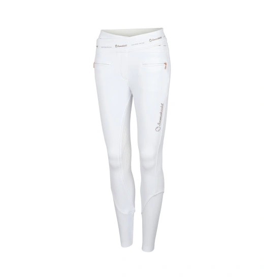 Samshield Alpha Winter breeches are perfect for winter. The breeches are made from extremely stretchable and waterproof fabric that is lined with fleece. The full silicon, six-layered grip increases stability in the saddle. The breeches are high-waisted and have an asymmetrical waistline, which looks amazing and emphasizes the figure. The breeches are not only extremely comfortable and have a perfect fit, but they’re also made with attention to detail – the breeches have a decorative Samshiled logo that is lined with Swarovski crystals. The breeches can be washed at 30 degrees.