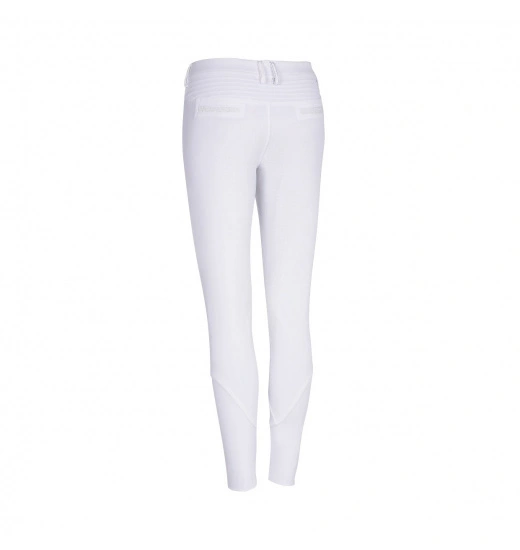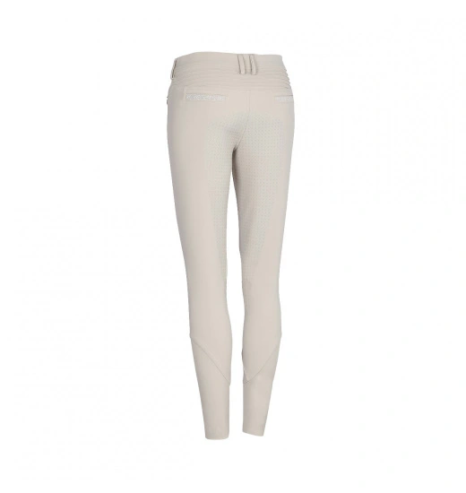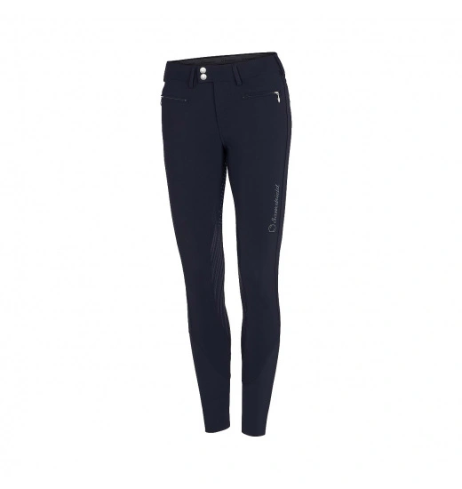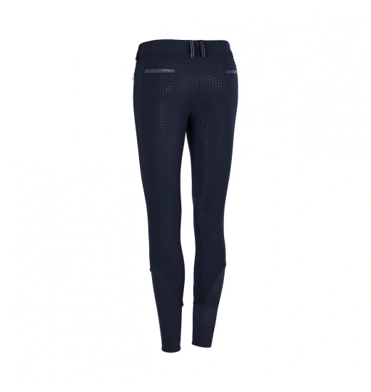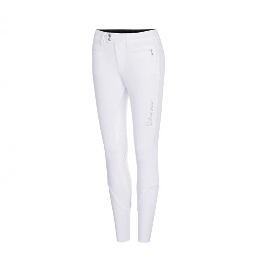Ladies’ breeches with full silicone seat, which provides perfect stabilization in the saddle. They are made of the highest-quality elastic material that stretches in all four ways, like a “second skin.” The breeches were designed to provide the highest possible comfort and fit. They are breathable and will protect you against UV radiation. Their legs have elastic trimming. These breeches are decorated with a logo and an inscription made of Swarovski crystals.