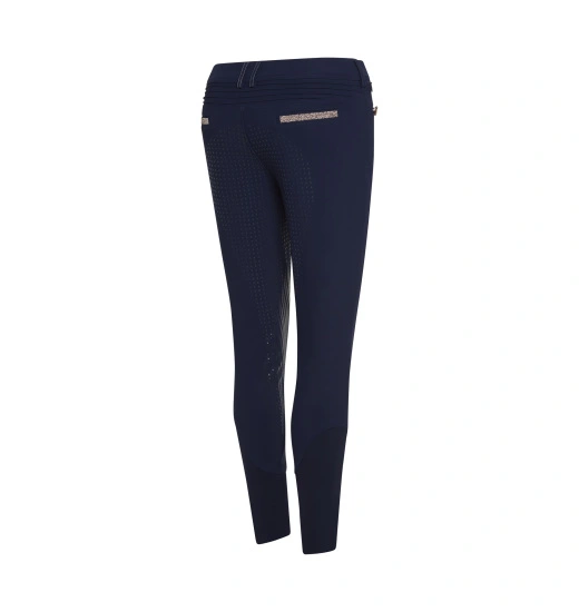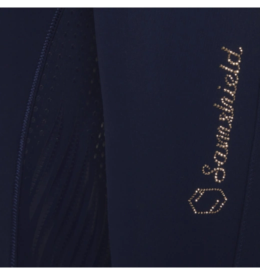 These sensational Samshield Diane women’s breeches are made of extremely stretchable and breathable Italian fabric, which allows the rider to feel as if they are wearing a second skin without restricting any movements. The six-layered full grip enhances the rider’s grip in the saddle. The fabric also has temperature regulation functions and wicks the moisture away, leaving the rider feeling comfortable and dry. The breeches have also been equipped with a phone pocket, a compression area on the calf, which improves blood circulation and supports the muscles during exercise, and elastic inserts at the bottom of the legs. The Samshield Diane breeches have been decorated with Swarovski crystals.