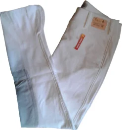 Tailored Sportsman Trophy Hunter mid rise, front zip breeches with a wide waistband and euro seat detail. 4-way stretch breeches made in a lightweight cotton fabric with Clarino® knee patches, front pockets, and Velcro® leg closures. 11 1/2″ rise. Machine washable. Made in the USA.