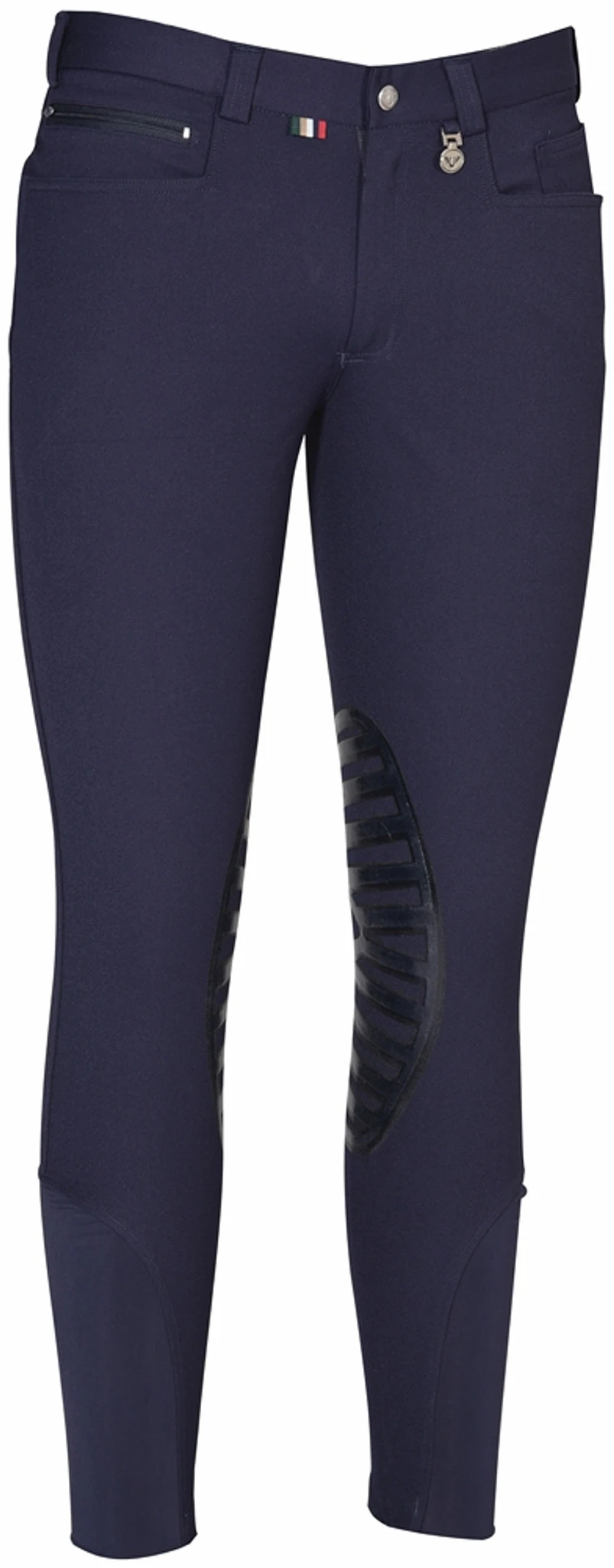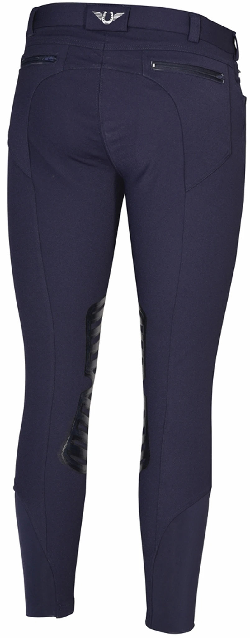 TuffRider Men’s Sawyer Silicone Knee Patch Breeches are ideal for schooling and shows. The Sawyer breeches are crafted with a simple design and are made from a comfortable fabric blend of nylon and spandex for all day comfort. The contoured sock bottoms will help to keep your breeches secure in your boots. We have also added silicone knee patches to help prevent slipping in the saddle to aid in a safer ride.